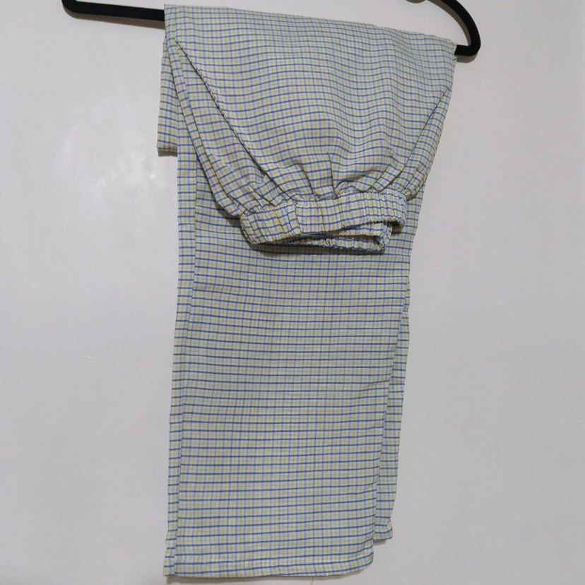 Erkek pijama altı, regular kesim, pile detaylı ve lastikli bel ile midi boyda. Gri ve sarı ekose desene sahip, rahat kullanım için uygun.