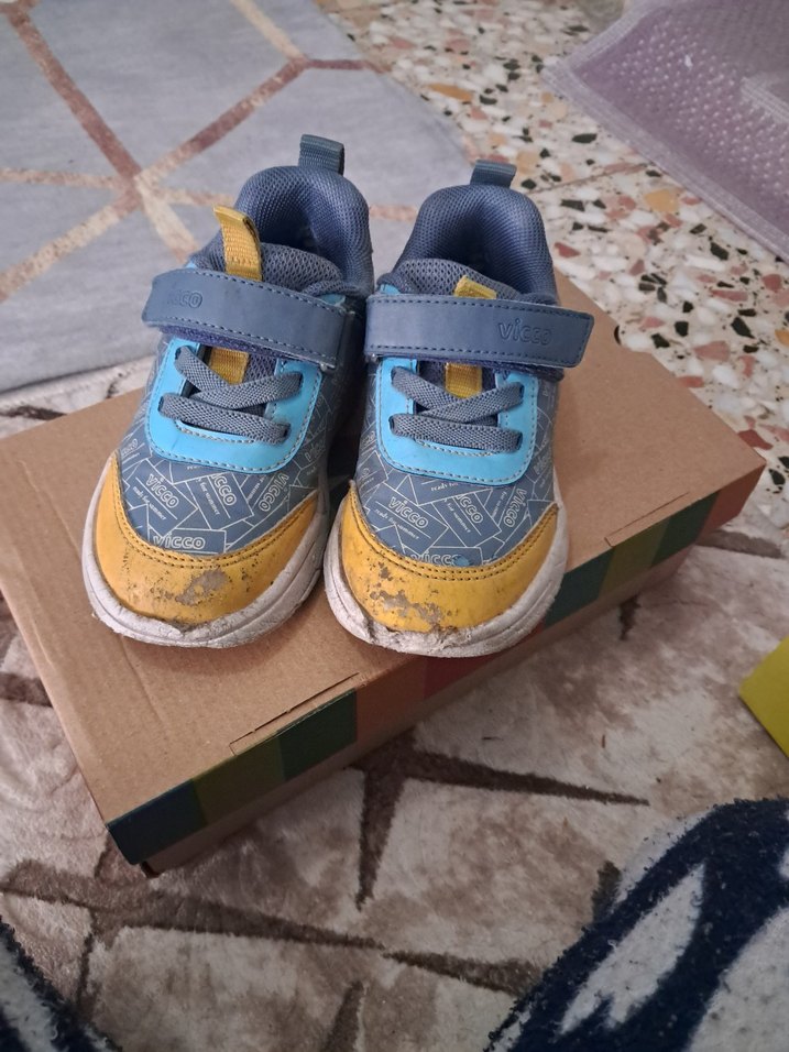 Lastik tabanlı ve kolay kapanan velcro bantlı erkek çocuk sneakers. Gri ve sarı renklerde, bağcık desenli, rahat sokak tarzı ayakkabı.