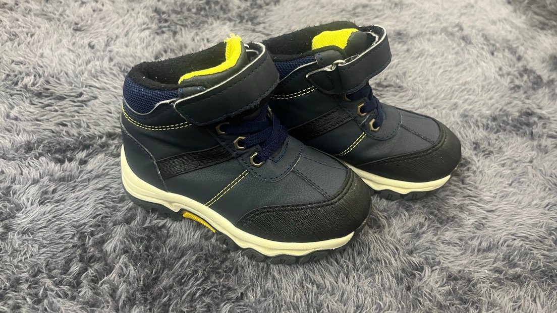 Gri ve sarı renklerde, Velcro bantlı, kauçuk tabanlı erkek çocuk botu. Sokak stiline uygun, desen içermeyen rahat ve şık tasarım.