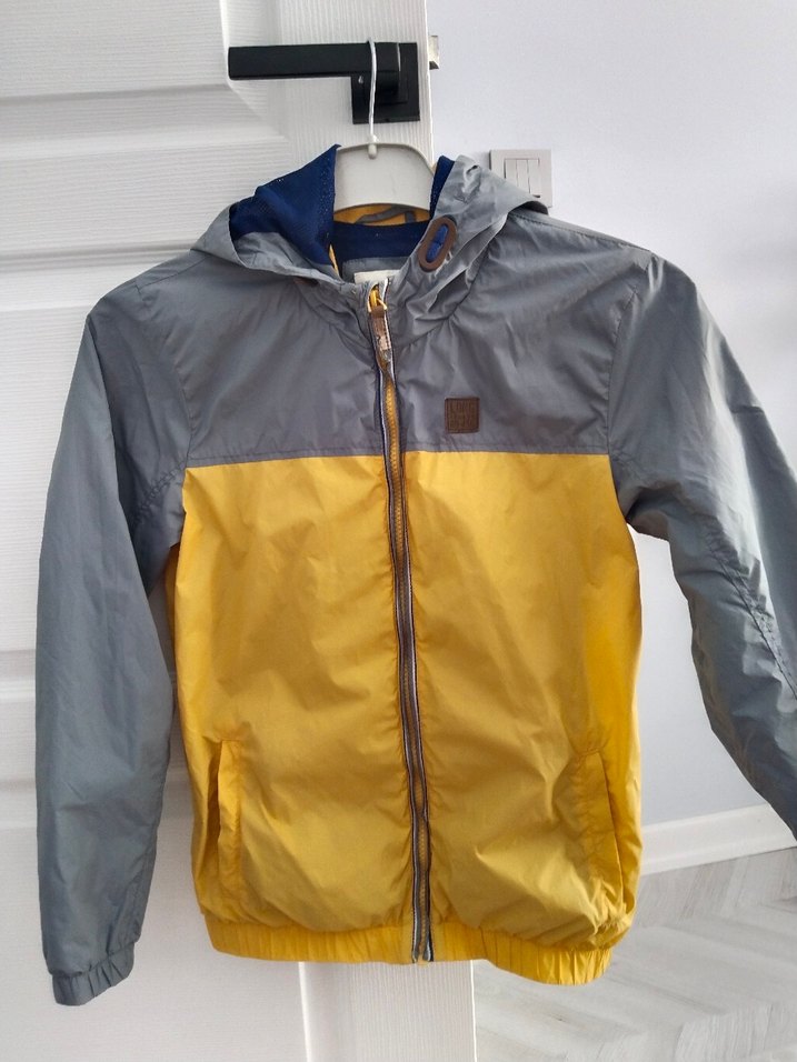 Gri-Sarı Kapüşonlu Erkek Çocuk Yağmurluk
