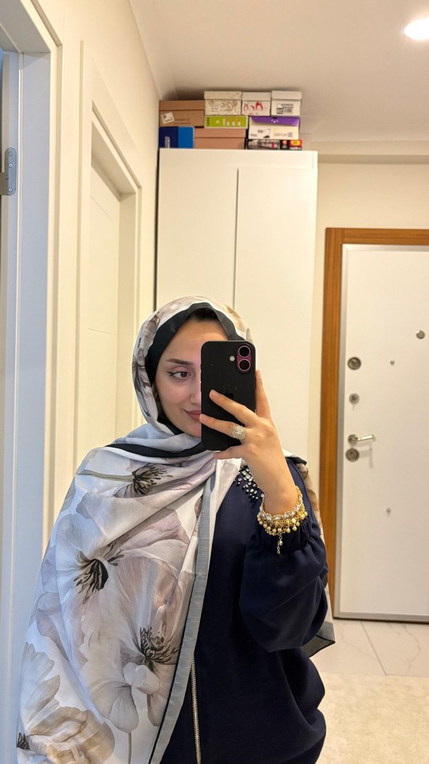 Kadınlar için gri renkte, saten dokulu ve drapeli tasarıma sahip şal. Modest ve bohem stilin sokak modasıyla birleşimi.
