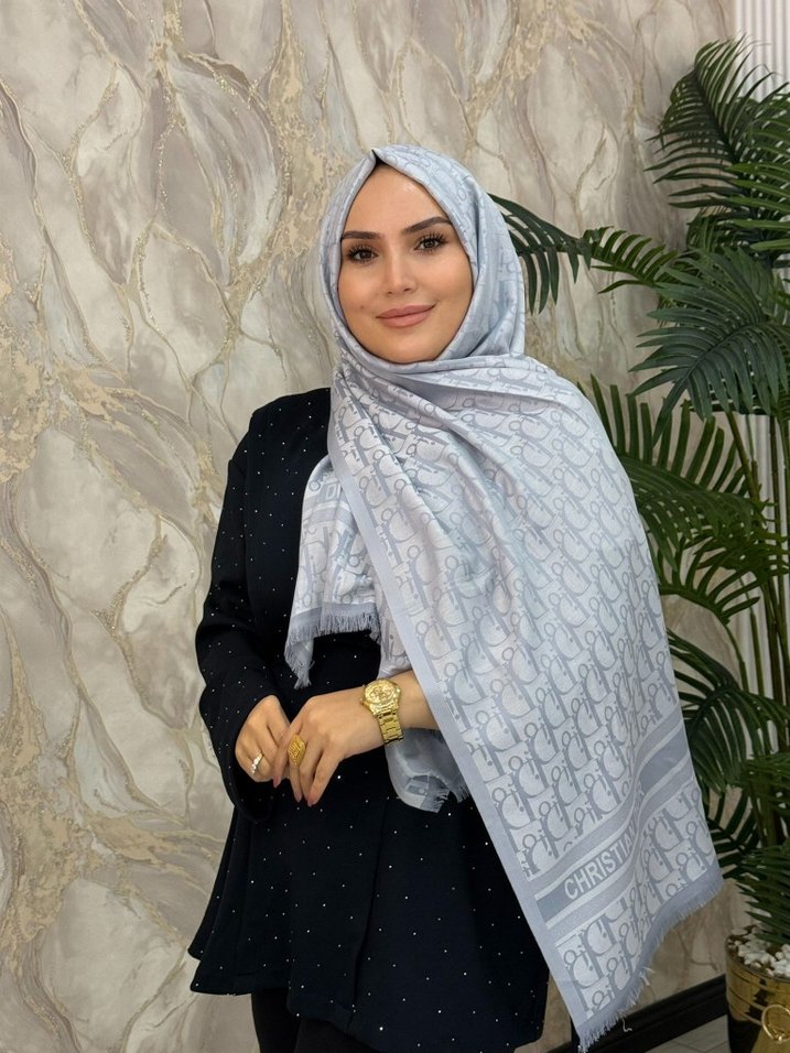 Kadınlar için gri, saten dokulu ve drapeli şal, sade ve rahat sokak stili için uygundur.