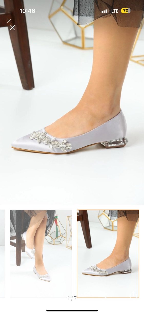Gri Saten Taşlı Düşük Topuklu Kadın Ayakkabı
