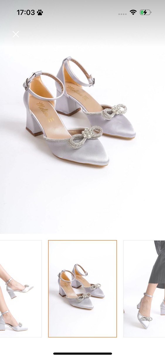 Gri Saten Topuklu Kadın Abiye Ayakkabı