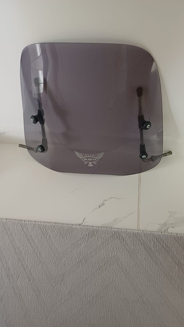 Gri şeffaf camdan yapılmış motosiklet siperliği, baskılı deseni ve minimalist tarzıyla rock punk havası sunar. ️