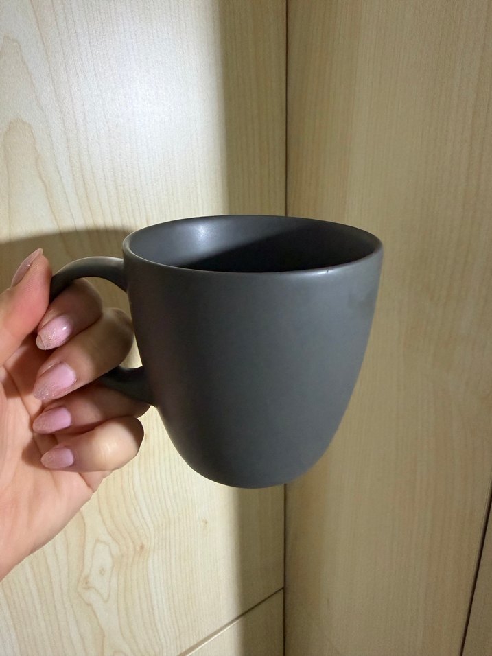 Mat gri renkte, seramikten yapılmış, sıcak içecekler için uygun bir kupa. Rahat tutuş sağlayan kulpu vardır. ☕
