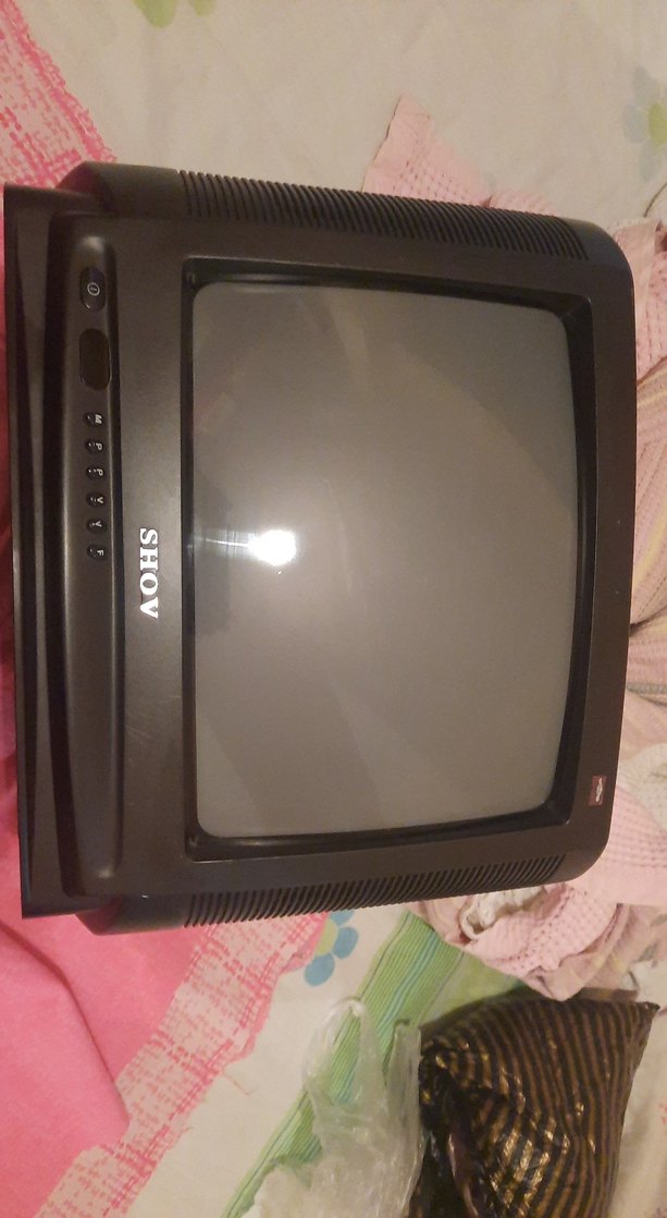 Ön panelinde manuel kontrol düğmeleri bulunan klasik kavisli ekrana sahip gri SHOV CRT televizyon hasarsız calışır durumda kumadayı bulursam beraber yollanır yoksa satılıyor