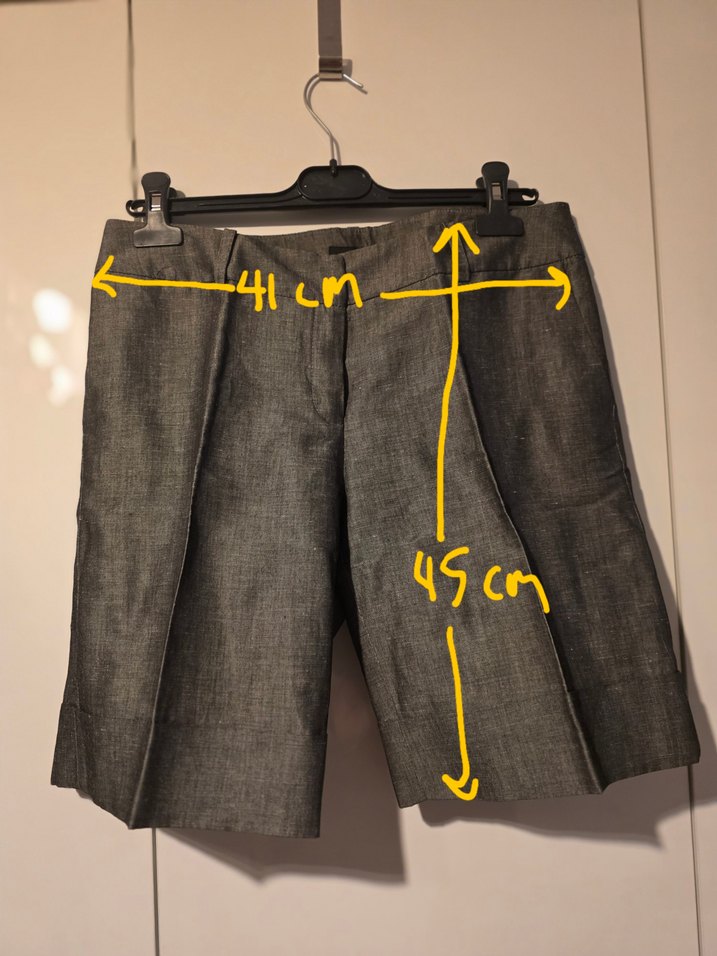 Gri yarı parlak özel bir kumaştan, regular fit kısa pantolon. Sokak stili ve açık hava kullanımı için uygun, 41 cm eninde ve 45 cm boyunda. Ekol marka, defosu yok, çok az giyildi, dar kalıp..