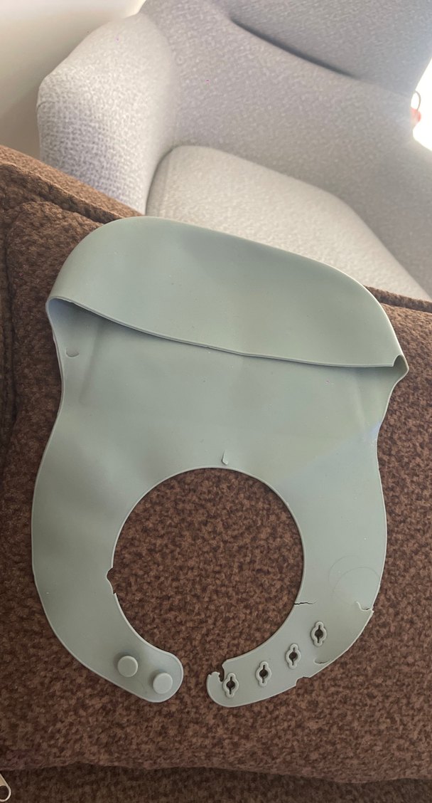 Ayarlanabilir boyun askısı ve geniş cep ile gri silikon bebek önlüğü, döküntüleri toplar. Temizlemesi kolay ve dayanıklıdır.