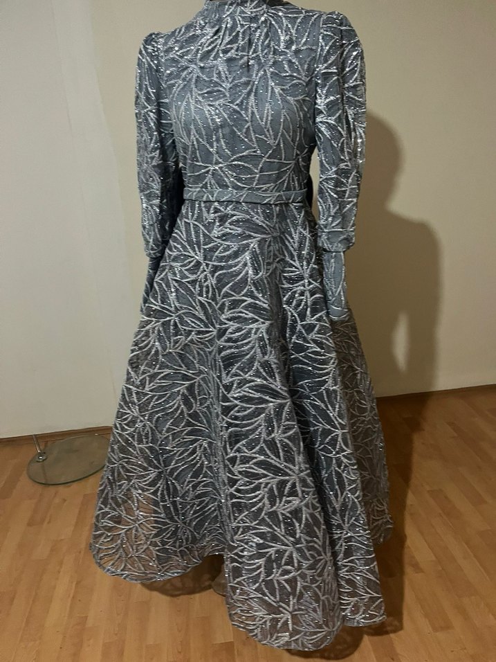 Gri sim işlemeli abiye