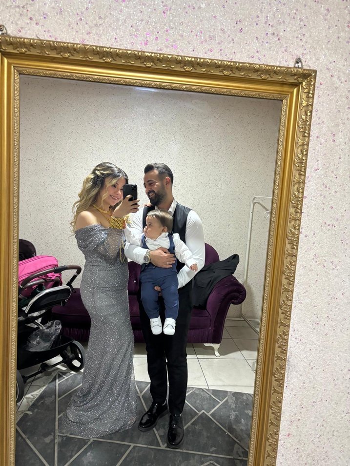 Gri kumaştan simli ve etnik desenli, uzun ve vücuda oturan abiye elbise. Kayık yaka uzun kollara sahiptir, modern klasik şıklık sunar. ✨