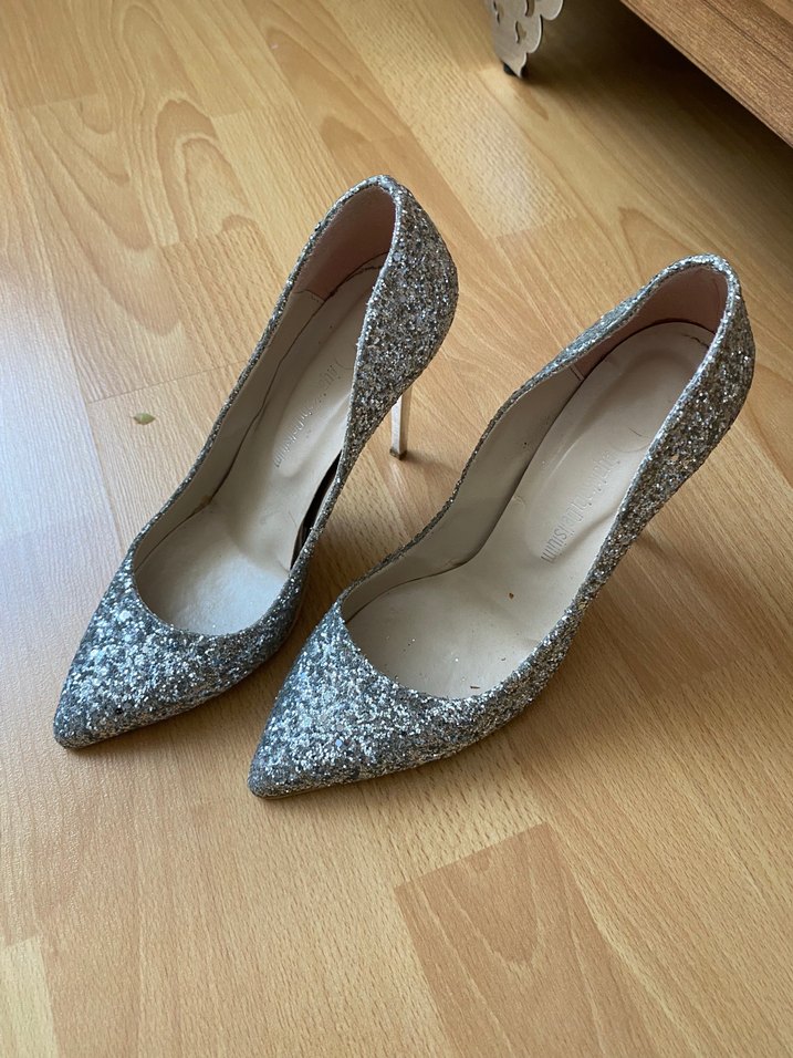 Gri Simli İnce Topuklu Kadın Abiye Ayakkabı