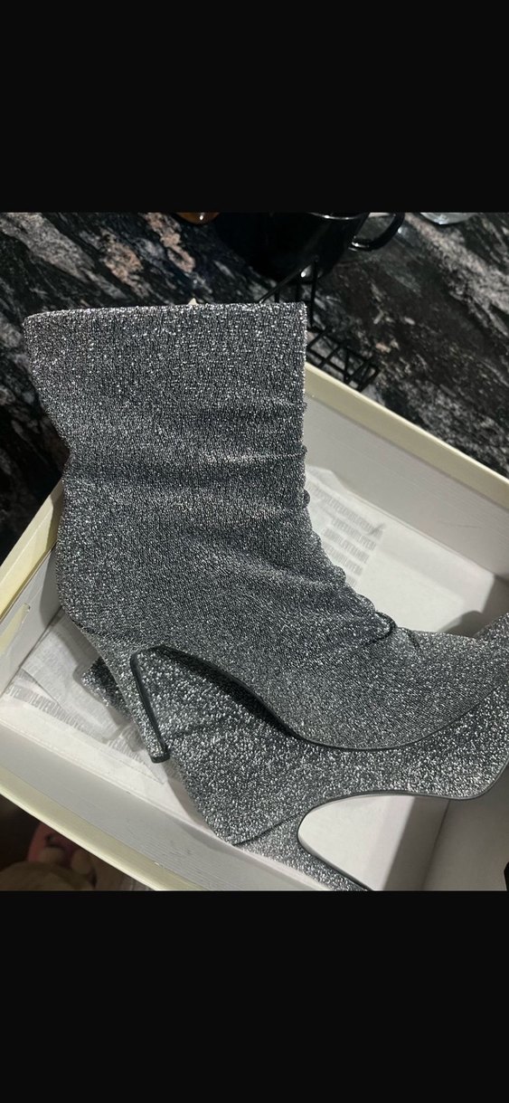 Bu gri botlar, ince topuk ve simli sentetik kumaş ile modern parti tarzları için uygundur. ✨ aşırı rahat ve şık modeldir.