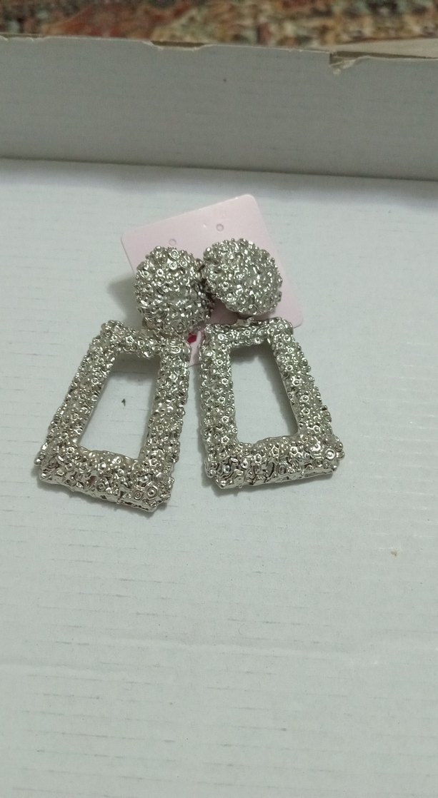 Kısa uzunlukta, gri renkli simli ve desenli tasarıma sahip, çağdaş ve göz alıcı küpeler. Düğünler için uygun. ✨