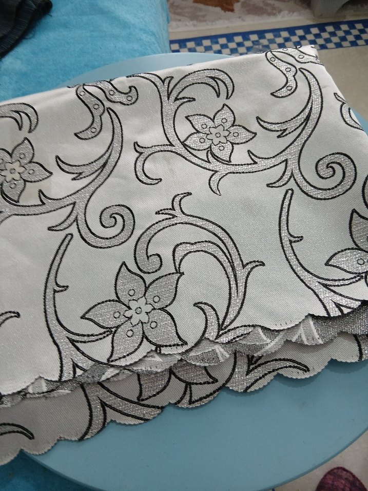 Gri  simli Nakışlı Beyaz Masa Örtüsü - Görsel 1