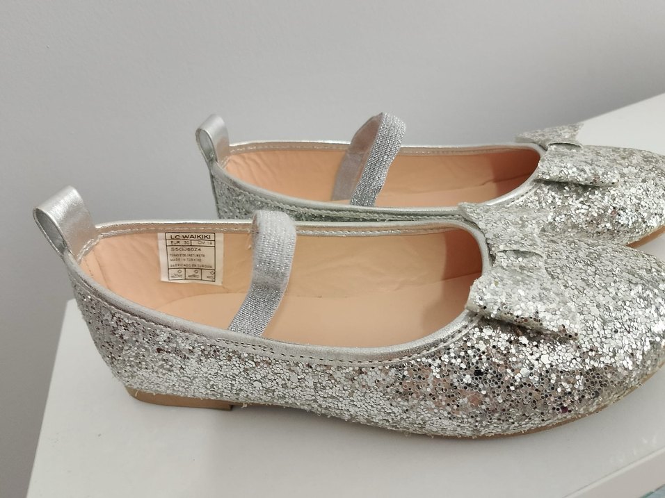Gri simli ve nakışlı desenlere sahip kız babetleri, rahat kauçuk tabanlıdır. ✨
