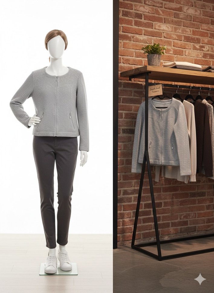 Gri renkli, simli örgü hırka , yuvarlak yaka ve uzun kolludur. Normal boy ve rahat kesim sunar, günlük kullanım için zahmetsiz şıklık sağlar.