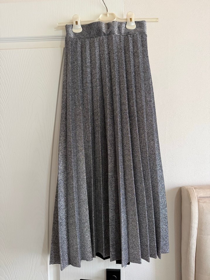 Gri simli piliseli etek