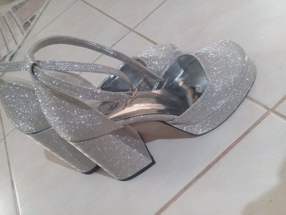 Gri simli platform topuklu, metal detaylı, desenli abiye kadın ayakkabısı. Düğün ve şık etkinlikler için uygundur. ✨