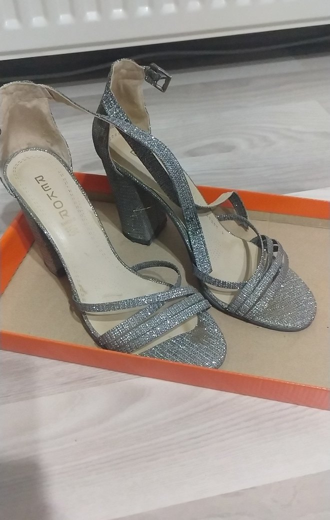 Gri simli Tokalı Topuklu Kadın Ayakkabı