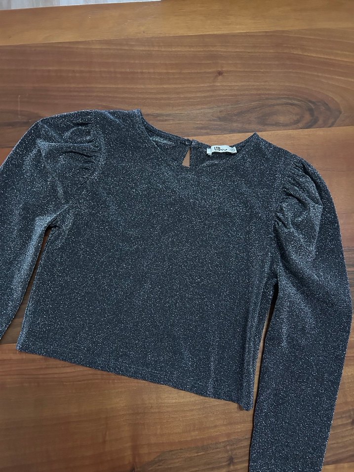 Gri Simli Uzun Kollu Bluz