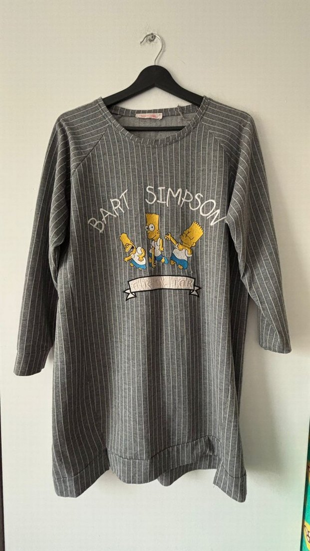 Gri renkte, uzun kollu ve bisiklet yaka triko hamile elbisesi. Önünde Bart Simpson baskısı bulunur, rahat ve salaş kesimlidir. Günlük kullanım için uygundur.