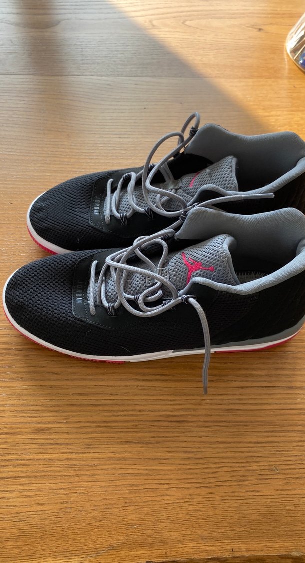Gri siyah basketbol ayakkabısı, velcro detaylı, kauçuk tabanlı ve spor tarzda. Trendy günlük kombinlere uygun.