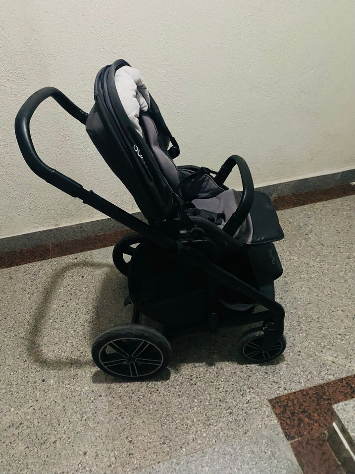 Bu bebek arabası sağlam yapıya, rahat oturma alanına ve büyük tekerleklere sahiptir. Siyah ve gri renklerle, kolay kullanım ve konfor sunar.