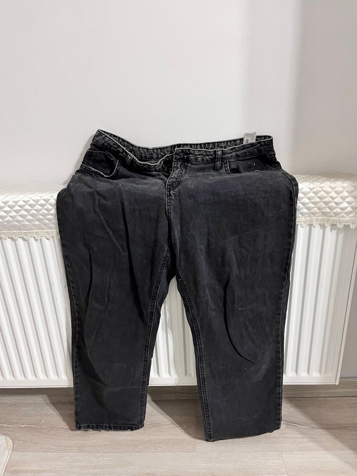 Gri Siyah Bol Kesim Midi Kadın Kot Pantolon
