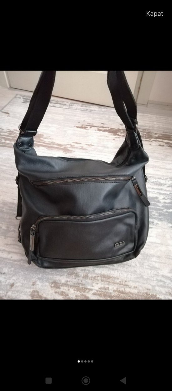 Yumuşak deri malzemeden yapılmış, siyah renk, çoklu fermuarlı bölmeleri olan, trend sokak stiline uygun kadın çantası. Sırt çantasıda olarak kullanılabilir. Temiz kullanıldı. 40*30 cm