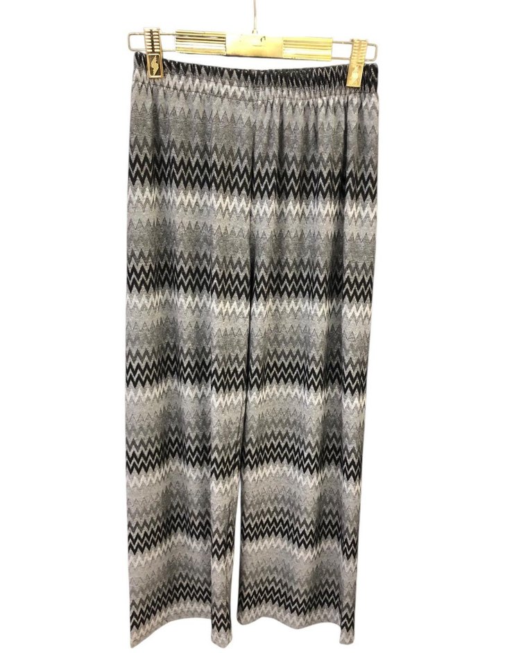 Gri siyah desenli, bol kesim ve pile detaylı kadın pantolon. Yumuşak sentetik kumaştan, rahat ve çağdaş tarzda, ofis kullanımı için uygundur. 38-40-42-44 bedenleri vardır sıfır üründür