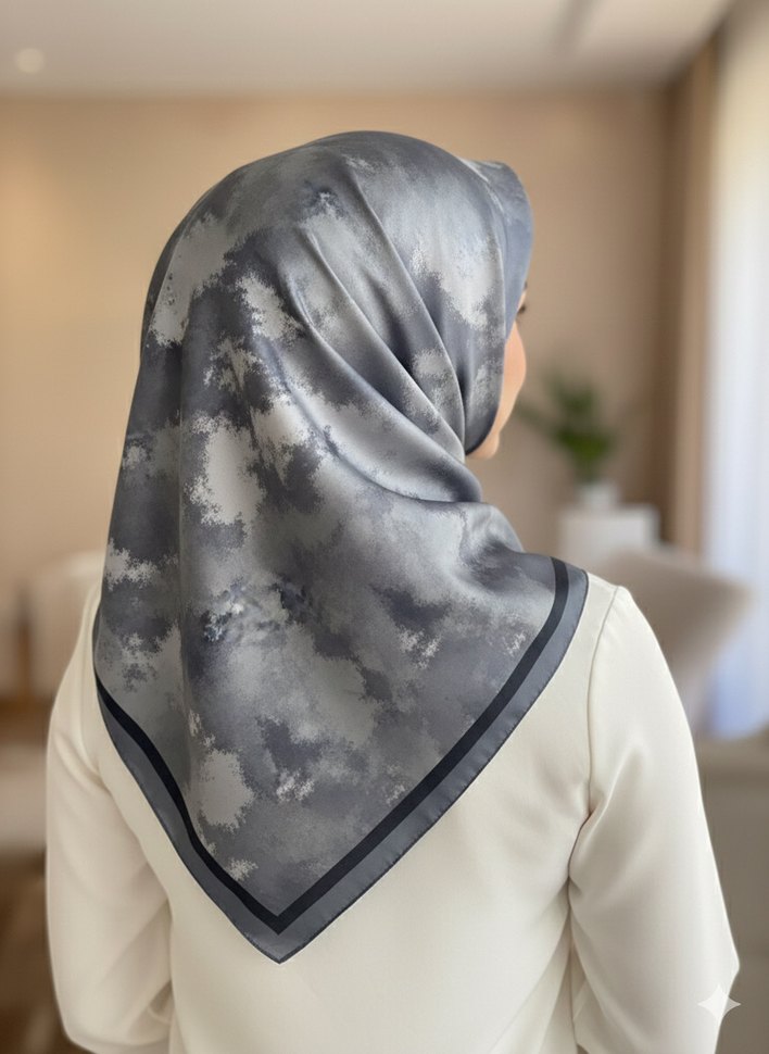 Gri Siyah Detaylı Soft Vual Eşarp