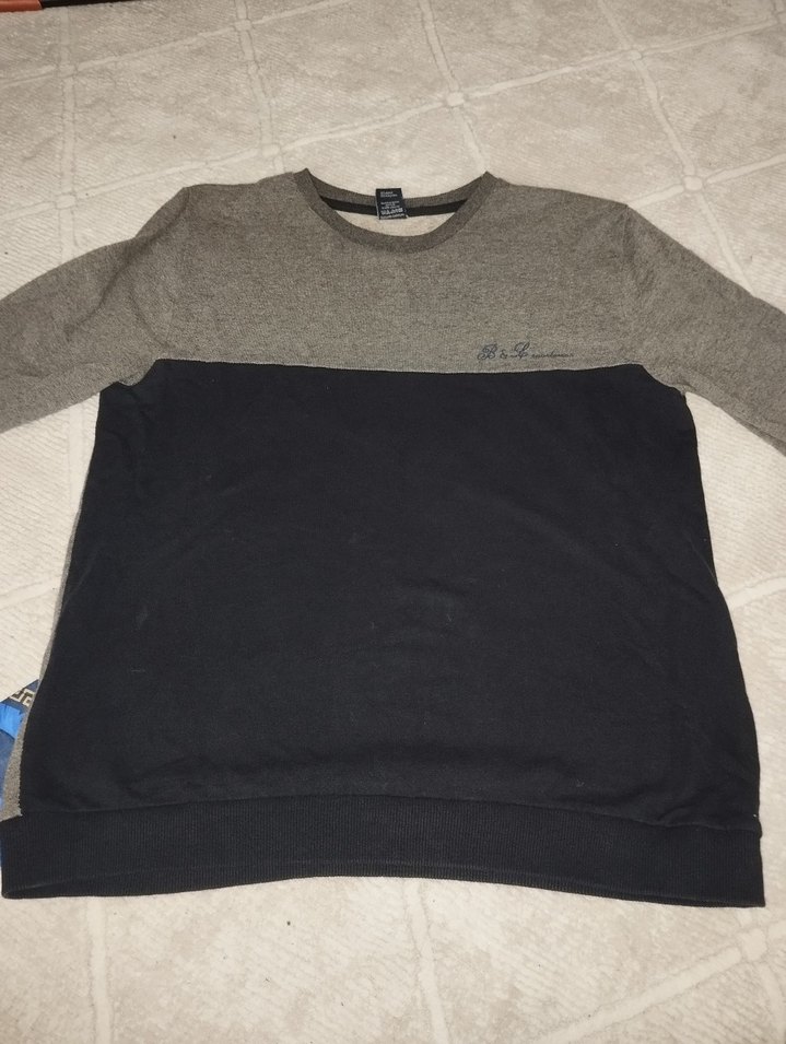 Gri ve siyah renklerde, yuvarlak yaka ve uzun kollu erkek sweatshirt. Rahat kesimi ve yumuşak dokusu ile günlük kullanım için uygundur. Sokak modasına uygun şık tasarım.