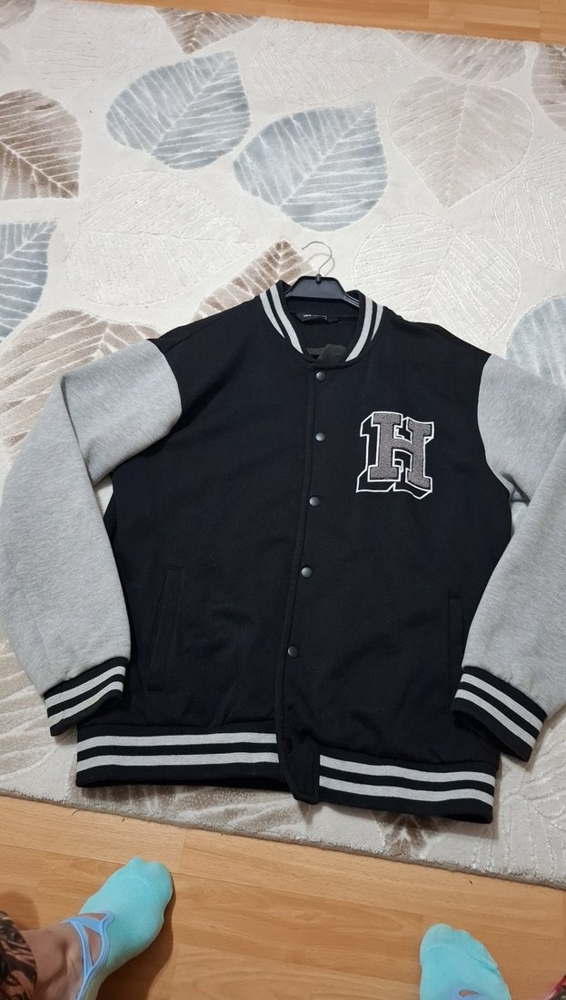 Erkek çocuk için düğmeli, bol kesim, bisiklet yaka sweatshirt. Gri kollar ve siyah gövde, baskılı 'H' detayıyla sokak stili sunar. Yumuşak ve sıcak kumaştan.