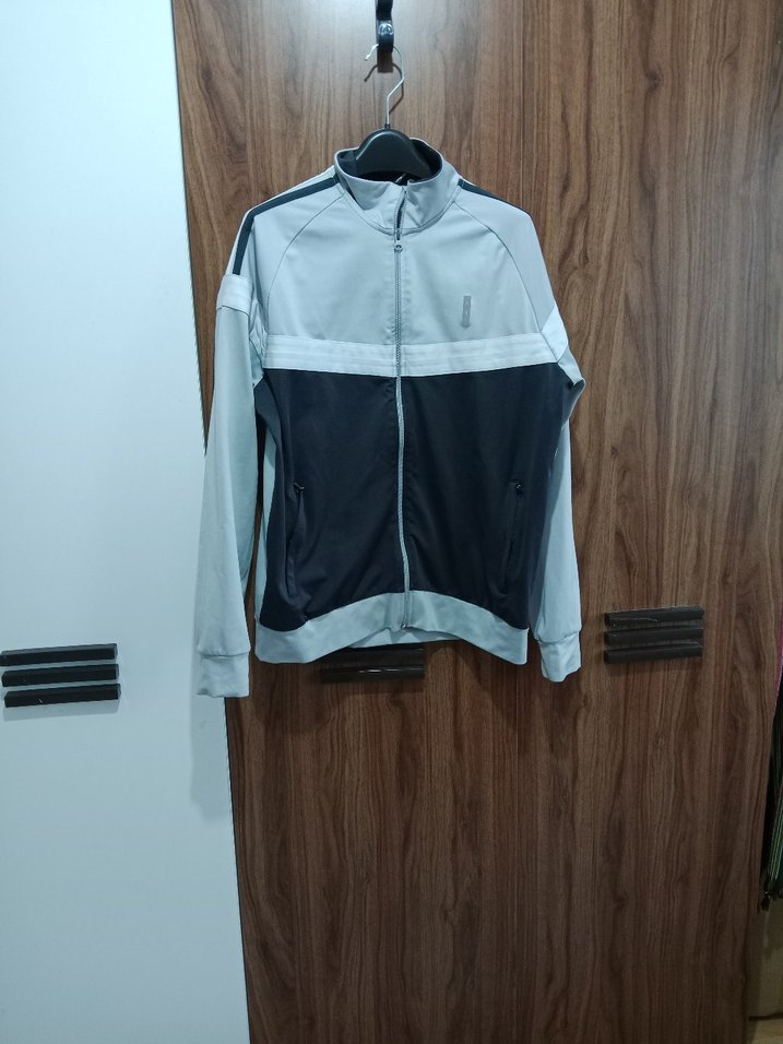 Gri Siyah Fermuarlı Erkek Spor Sweatshirt