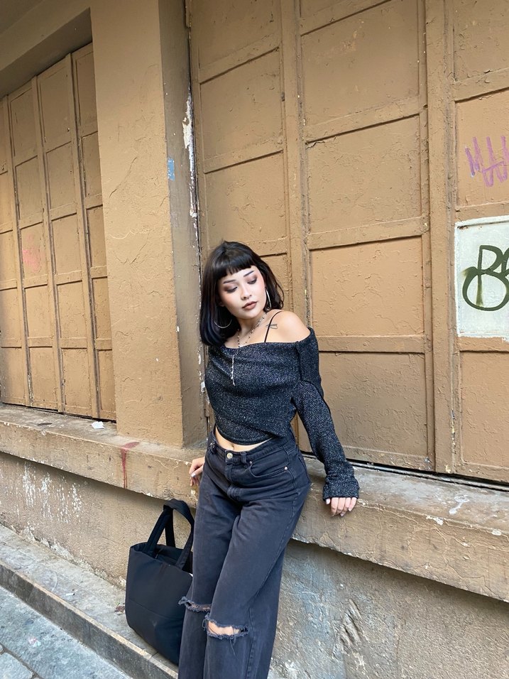 Gri siyah renkte, midi boy, salaş kesim kadın kot pantolon. Denim kumaştan, günlük kullanıma uygun rahat ve şık bir sokak stili ürünü.