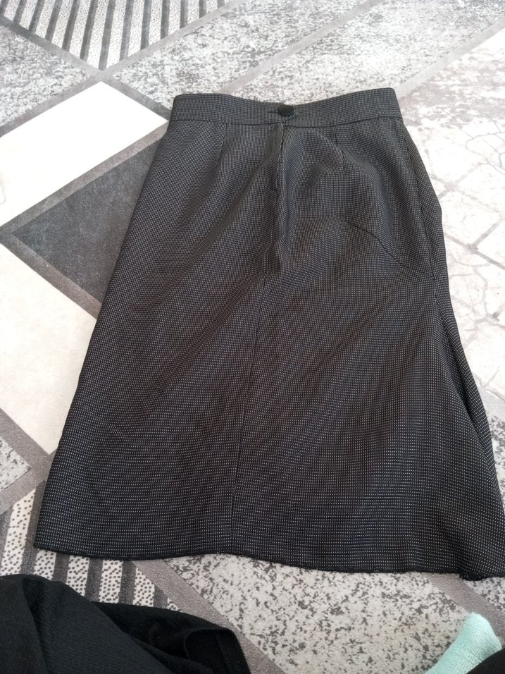Sentetik kumaştan, pilili ve normal boy midi kalem etek. Gri siyah tonlarıyla ofis ve gotik tarzlara uygundur.