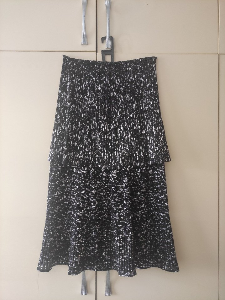 Gri Siyah Pilili Uzun Kadın Etek