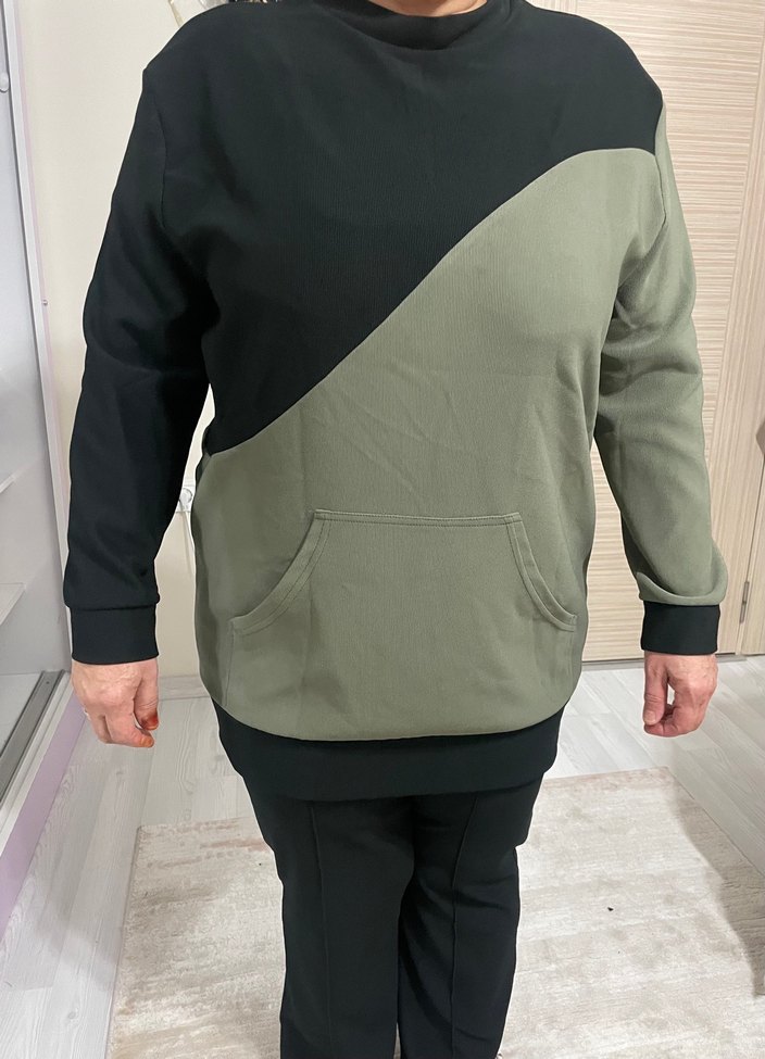 İkili takımdır hiç giyilmedi denilecek kadar az giyildi tertemiz crew neck ve uzun kollu sweatshirt, regular fit ve midi boyda. Siyah ve gri renk bloklu, yumuşak ve sıcak kumaştan üretilmiştir.