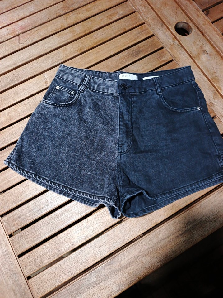 Gri ve siyah tonlarda salaş mini denim şort, rahat sokak stili ve zahmetsiz şıklık sunar. Günlük kullanım için uygundur.