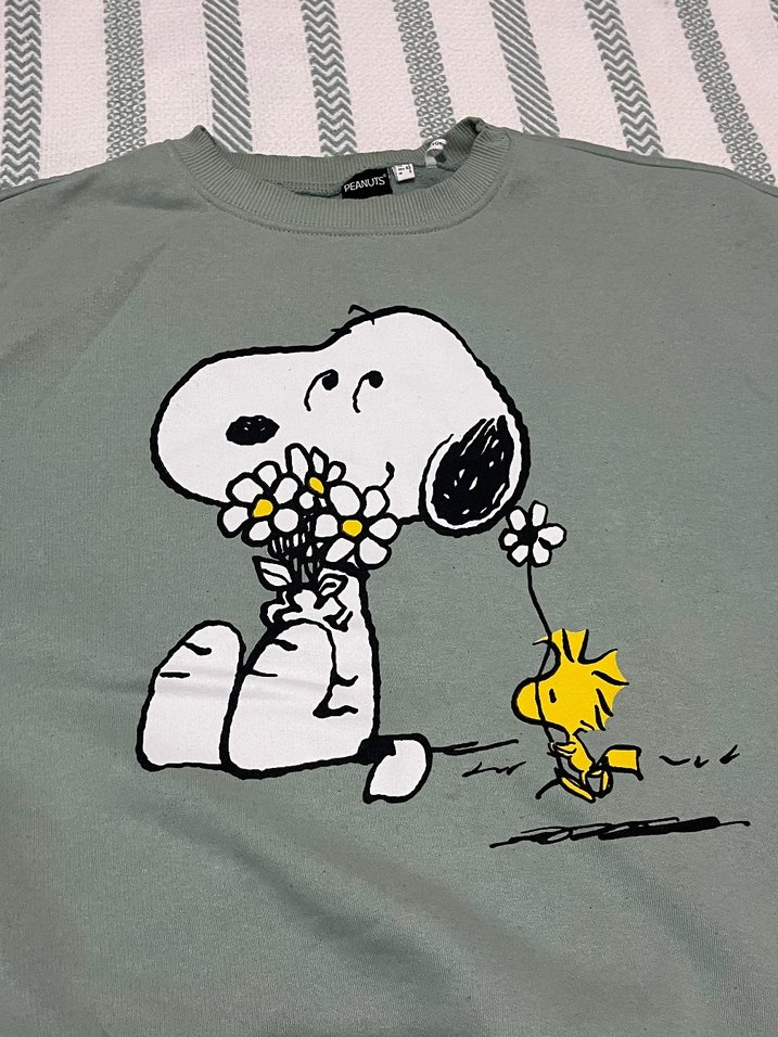 Gri Snoopy Baskılı Kadın Sweatshirt