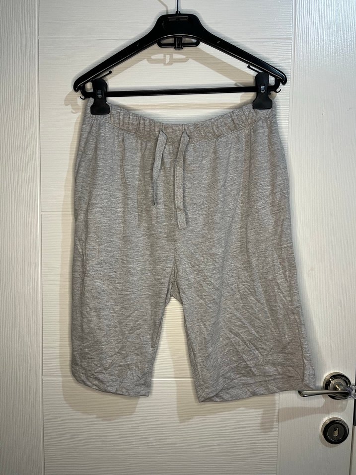 Gri renkte, rahat kesim kısa erkek şort. Sokak giyimi tarzında, şık ve rahat bir görünüm sunar. Ev giyimde de kullanılabilir. Hiç giyilmedi. Bedeni s.
