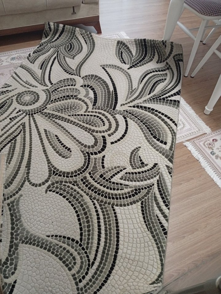Gri tonlarında soyut desenlere sahip bu modern halı, her mekâna şık bir dokunuş katıyor 1.25/2 metre yıkanırsa daha iyi olur