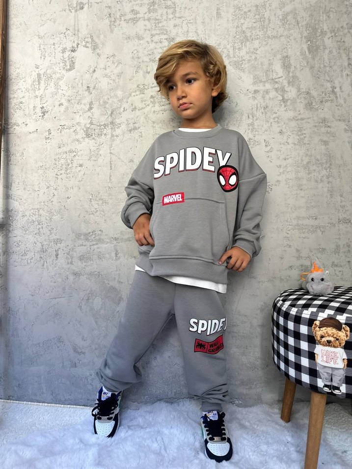 Gri renkli, bol kesim erkek çocuk eşofman takımı, Spidey ve Marvel baskılarıyla. Yumuşak kumaş, bisiklet yaka ve cırt cırt detaylıdır. ️✨ 3 İP TAKIM (Açık Gri) 2-3 3-4 7-8