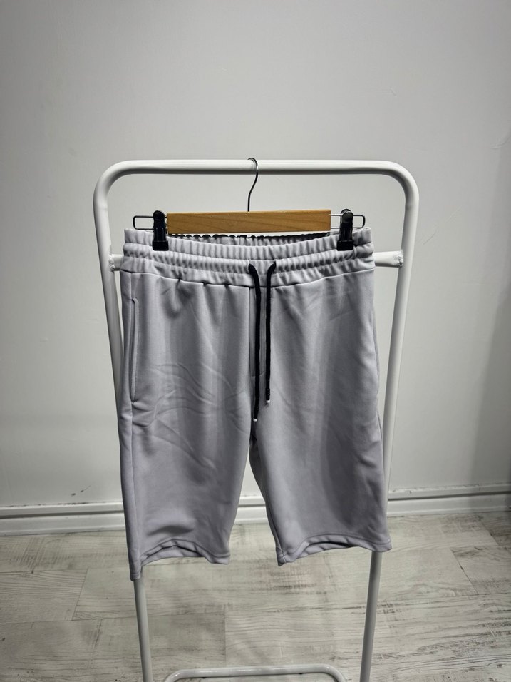Yumuşak sentetik kumaştan, lastikli bel ve bağcıklı, bol kesim gri erkek spor şort. Rahat ve sportif tarz için ideal.