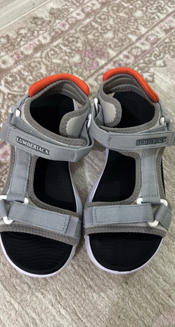 Gri kauçuk tabanlı erkek spor sandaletler, ayarlanabilir Velcro bantlarla rahat uyum sağlar. Outdoor ve streetwear tarzına uygundur. Dockers ve Lumberjack markaları bulunur.