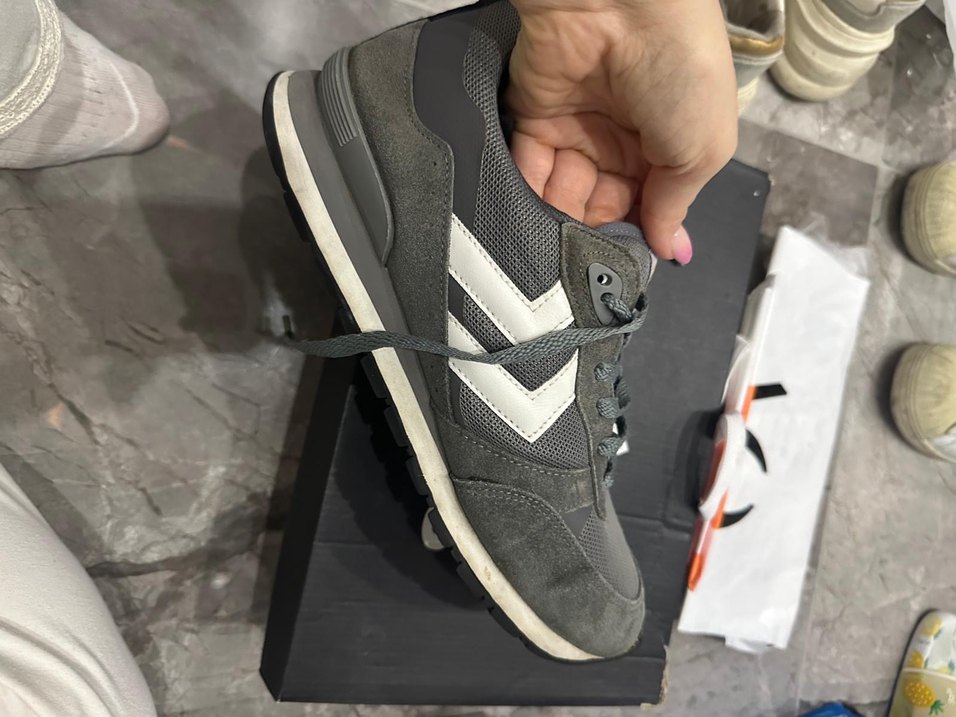 Orjinal Gri renkte, kauçuk tabanlı ve cırt cırt detaylı kadın spor sneakers, sivri topuklu tasarımla sportif sokak stili için uygun.