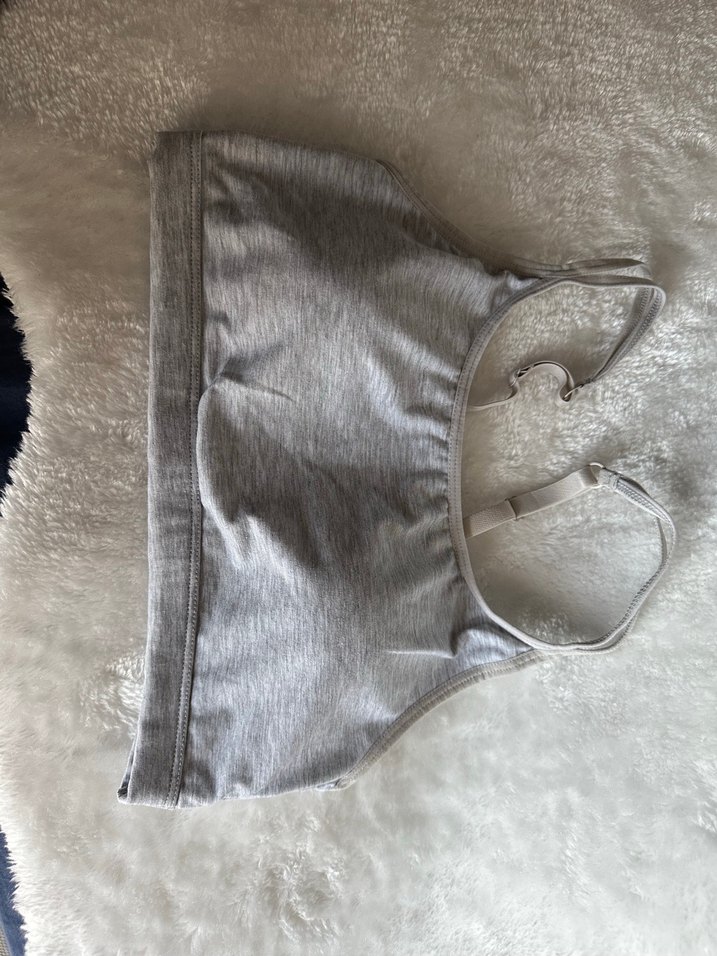Ayarlanabilir askılı, gri renkli spor sütyeni. Yumuşak ve rahat kumaştan, desensiz ve sokak stili için uygun.