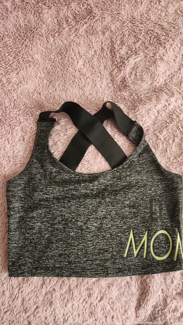 Gri renkte, MO baskılı ve çapraz sırt askılı spor sütyeni, streetwear ve athleisure tarzlar için uygundur. ️Spor atlet yada crop sütyen, temiz 1 sezon kullanıldı. Esnek temiz