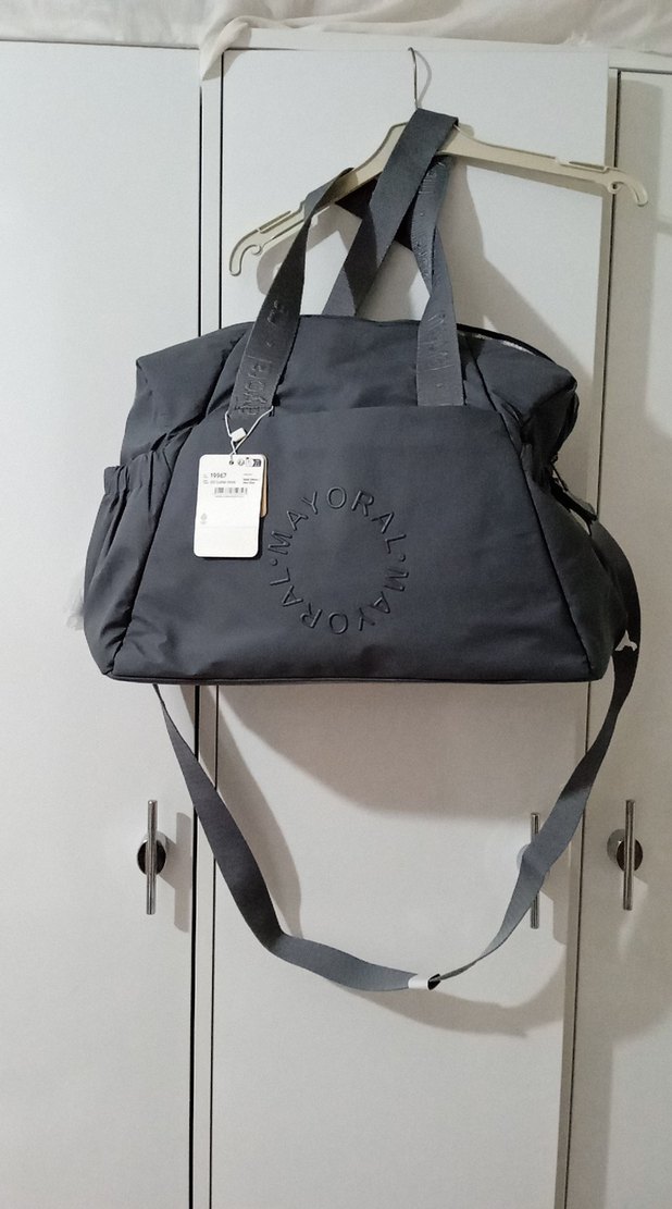 Gri renkli, baskılı ve tokalı detaylara sahip spor tarzı suni deri dayanıklı malzemeden yapılmıştır, trend ve rahat kullanıma uygundur.
